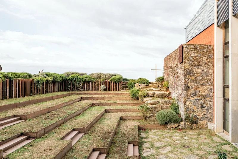 A completare il sistema di accoglienza fu poi, nel 2017, la Foresteria del Pellegrino, composta da una serie di volumi disposti lungo il pendio per mantenere un rapporto diretto tra architettura e suolo.