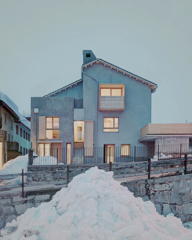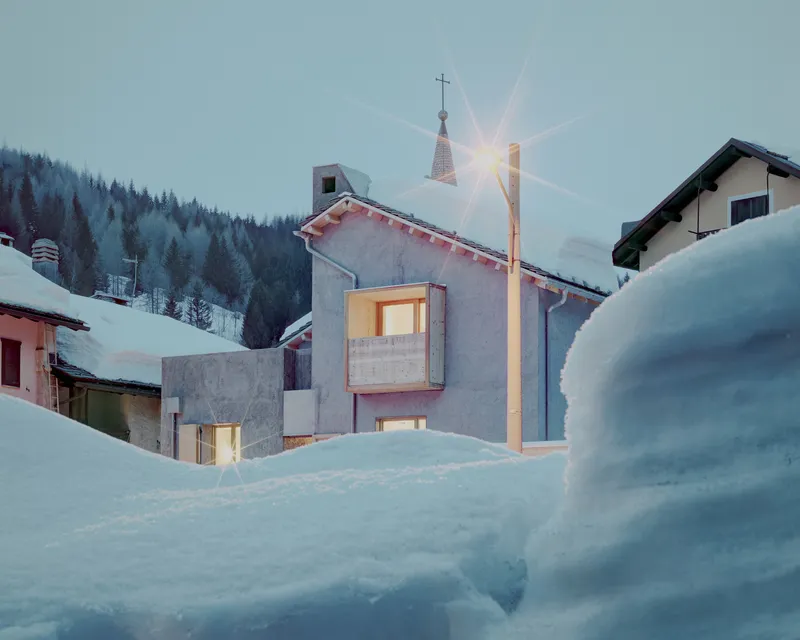 Situata a Madesimo, in provincia di Sondrio, località nota per i numerosi impianti sciistici, l'architettura di Enrico Scaramellini si fonda su un principio: lavorare esclusivamente sull'esistente, senza demolire i muri perimetrali, limitando l'intervento alla sostituzione della copertura e a una rilettura complessiva degli spazi.