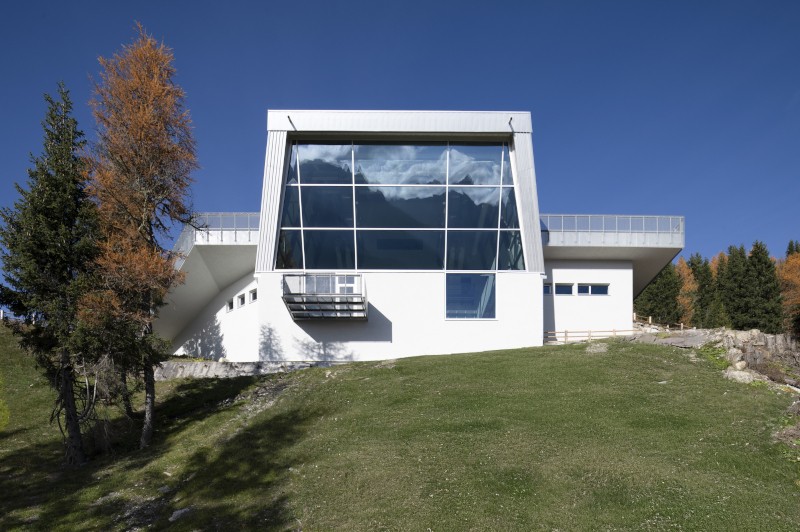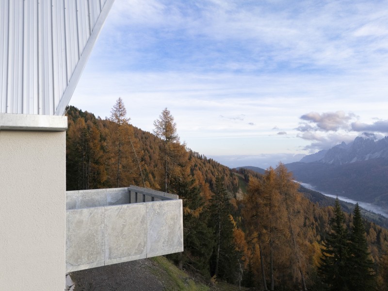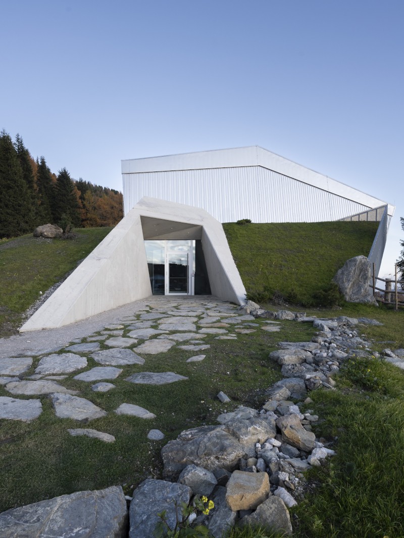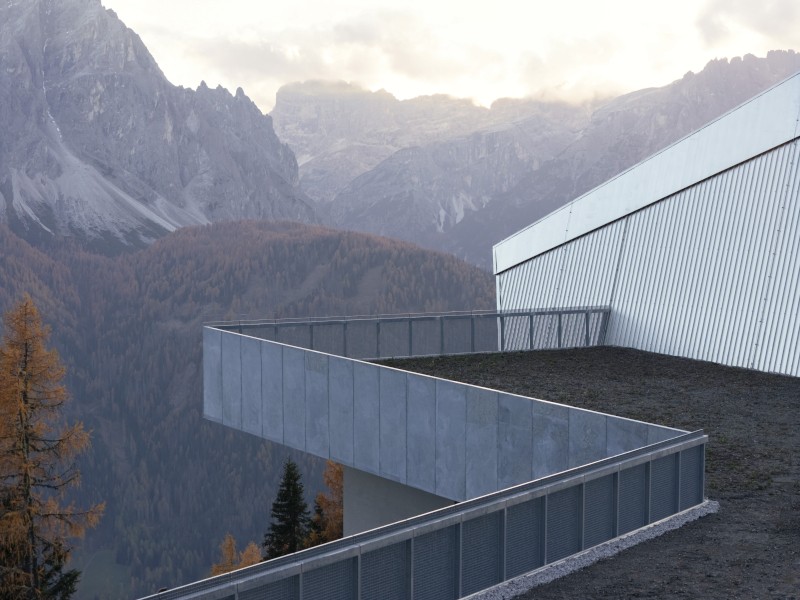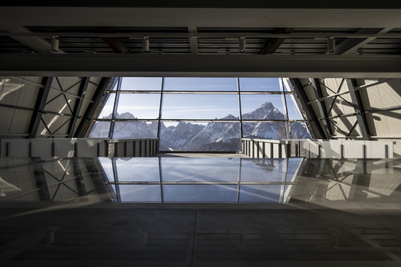La nuova facciata vetrata e l'apertura trapezoidale della copertura, un tempo concepita per l'arrivo delle cabine, preservano il carattere infrastrutturale dell'edificio trasformandolo in un dispositivo di osservazione. Anche la piattaforma panoramica nell'area museale inferiore sottolinea questa relazione tra architettura e paesaggio, rafforzando la narrazione espositiva e educativa, in cui il patrimonio personale di Reinhold Messner entra in dialogo con l'immensità delle Dolomiti.