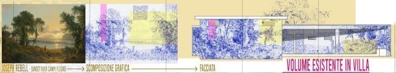 «Tra le sue conclamate bellezze - proseguono -, Bacoli è ancora oggi un territorio capace di generare ispirazione artistica. Nel tentativo di riannodare con leggerezza questo patrimonio visivo al quotidiano contemporaneo, alcune di queste rappresentazioni sono state ridisegnate e riportate nello spazio pubblico. Il dipinto "Sunset over the Campi Flegrei" di Rebell, viene ricodificato graficamente e trasposto sulle facciate dell'edificio comunale nella villa fronte lago, destinato a biglietteria e bookshop del nuovo Parco Mirabilis. In questo gesto, la memoria pittorica diventa materia urbana».