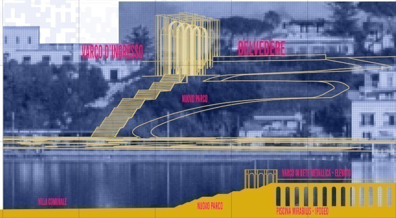 La zona (oggi agricola) tra la villa comunale e la Piscina mirabilis viene considerata una possibile area d'intervento per la realizzazione del nuovo parco. «Uno spazio in grado di ricucire archeologia e paesaggio in un asse visuale e pedonale continuo, dal Lago Miseno fino alla collina-belvedere. Da questo punto elevato si apre un panorama ampio e luminoso su Bacoli, sul lago, su Monte di Procida e sulle isole, in un unico sguardo capace di restituire la potente continuità del luogo», spiegano ancora i vincitori. Qui un'opera d'arte eterea è pensata per segnalare la presenza della "cisterna dell'acqua". All'interno del parco sono previsti inoltre un'area giochi per i bambini ed un padiglione espositivo. A valle della collina, l'asse del parco termina con un pontile sul lago Miseno dove un padiglione - amovibile e modulare - ospita il noleggio di piccole imbarcazioni elettriche, Sup e canoe per esplorare il lago e ammirare il paesaggio che lo circonda.