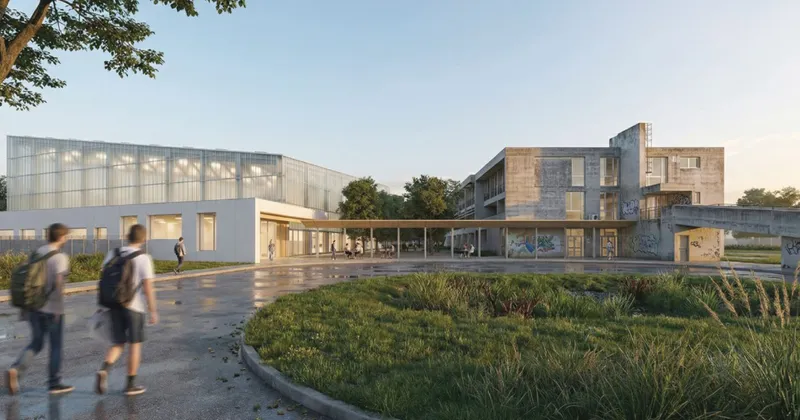 La palestra si inserisce in questo sistema come uno degli elementi della rete, affiancata alla rifunzionalizzazione della Casa dello Studente, trasformata in centro per visitatori e hub comunitario. L'intervento evita forme dominanti, privilegiando un'architettura integrata nel contesto e coerente con la scala degli spazi pubblici.