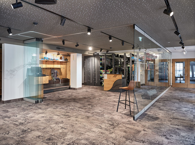 L’ingresso principale è costituito dalla porta scorrevole automatica a risparmio energetico ST FLEX Green con profilo sottile e ottimo isolamento termico. Per le partizioni interne sono state scelte porte trasparenti con azionamento ES 200, che consente un passaggio senza barriere architettoniche e un funzionamento fluido.