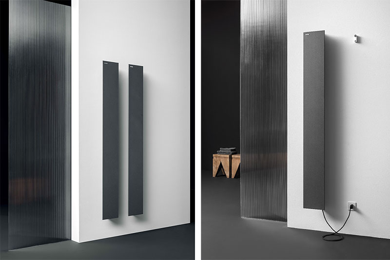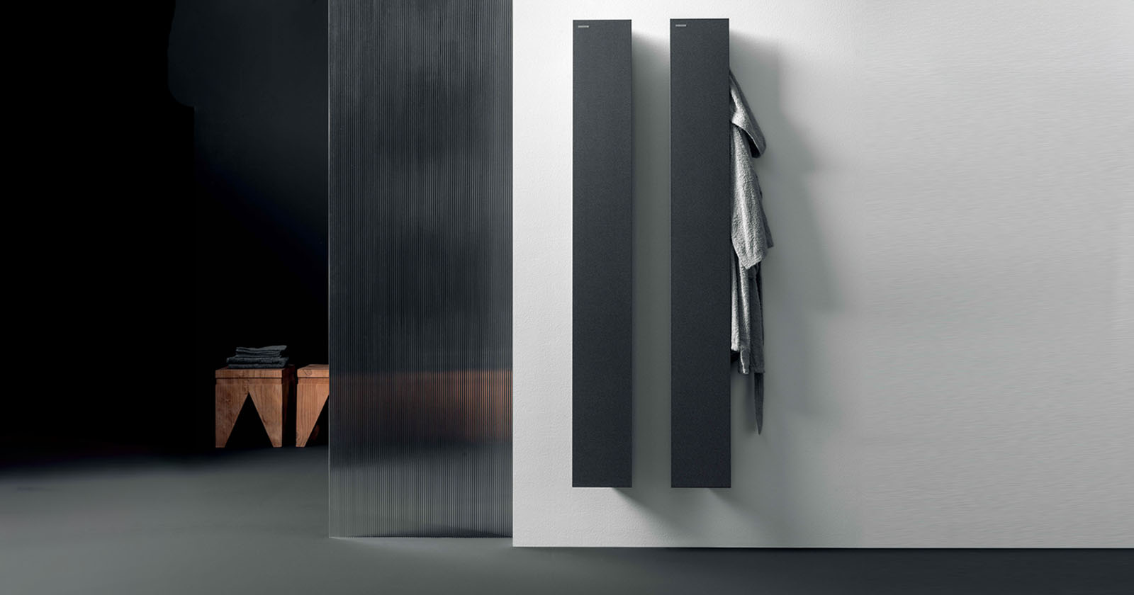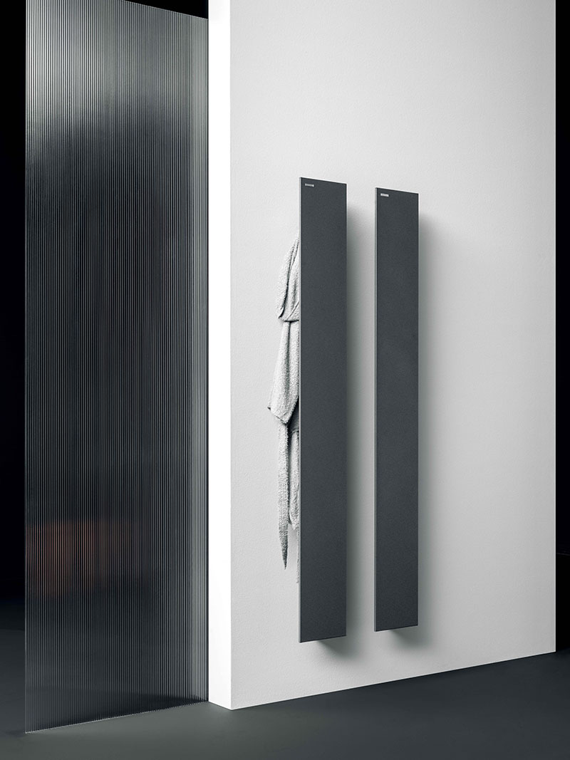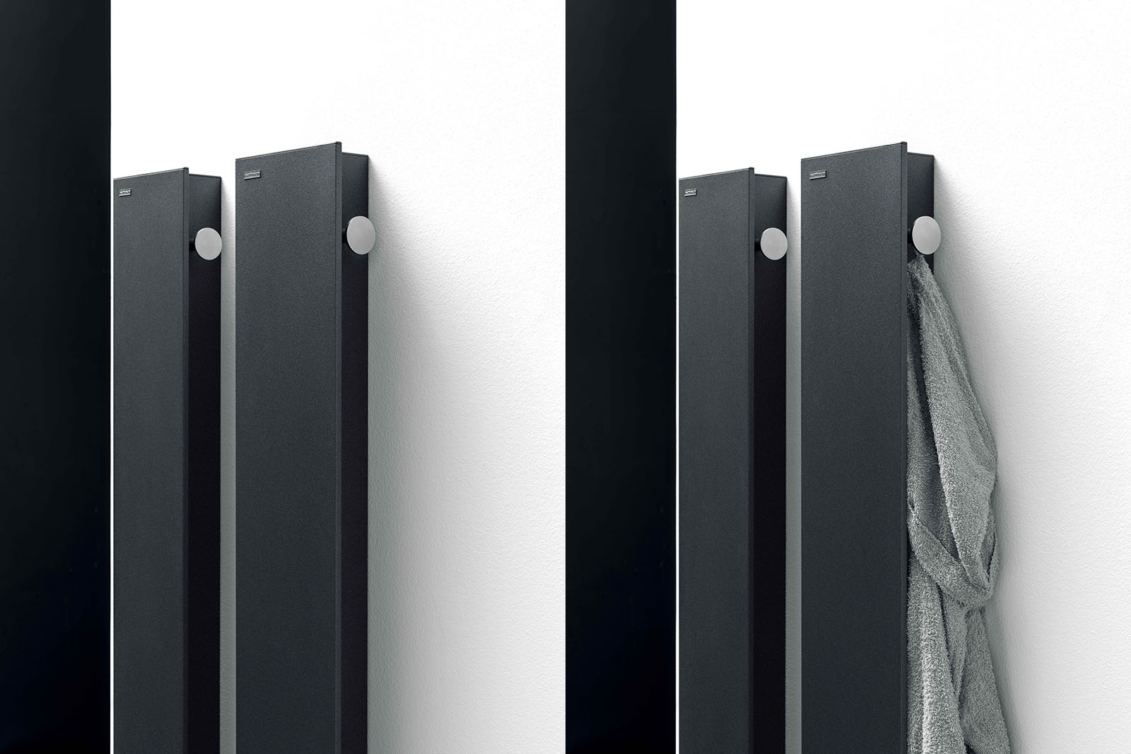 Antrax IT . T1V . un termoarredo verticale dall’estetica essenziale accessoriabile con ganci