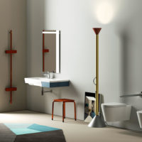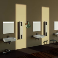 La collezione si distingue per la versatilità dell’arredo, i materiali utilizzati e i colori. Ma la vera protagonista è la maniglia in acciaio inox con fissaggi in alluminio, l’elemento simbolo di un bagno per disabili diventa qui un motivo ricorrente che unisce tutto il progetto.