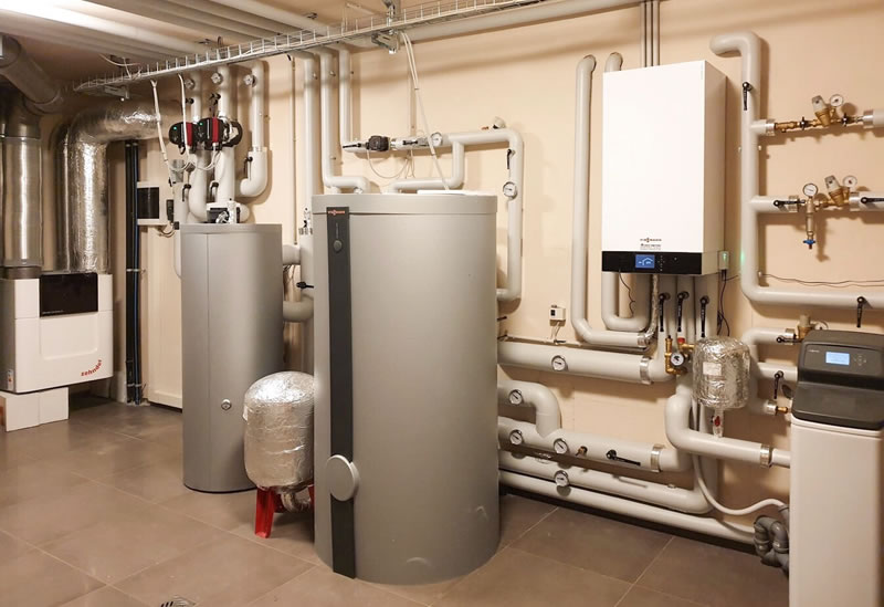 Completano l’impianto un bollitore Vitocell 100-V CVW da 390 litri, che permette di accumulare acqua calda sanitaria in modo molto efficiente grazie al suo alto spessore di isolante e un accumulo inerziale Viessmann Solarcell PSS da 200 litri con isolamento di 50 mm in poliuretano iniettato.