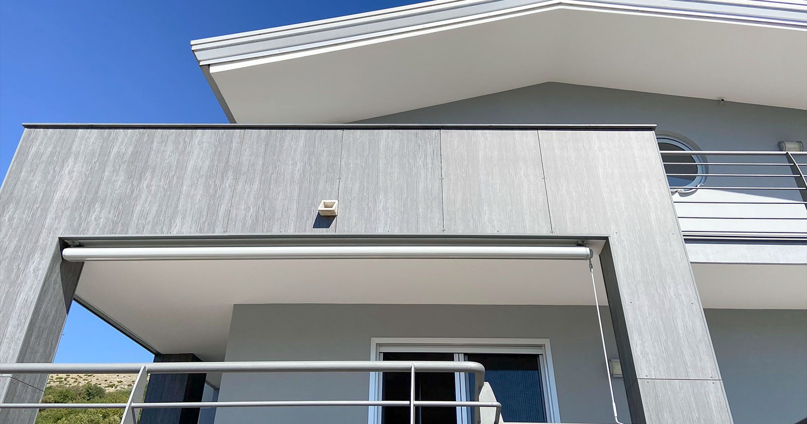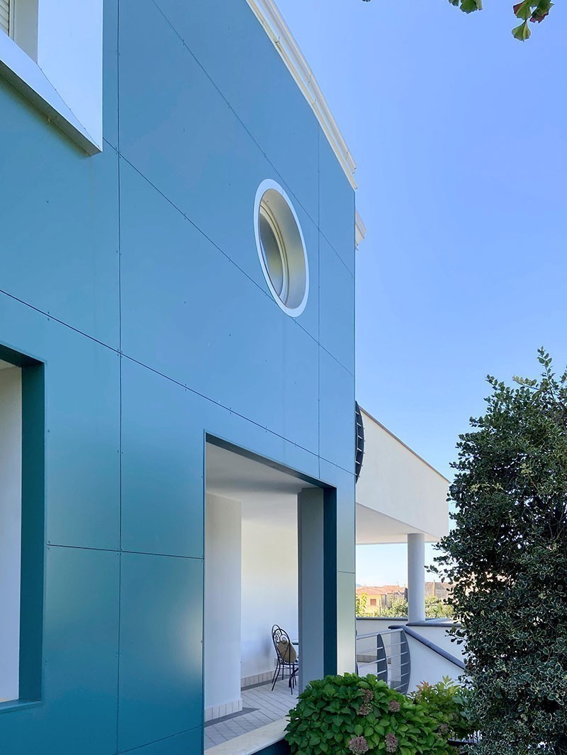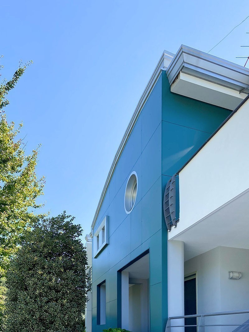 Il pannello, durevole e resistente ai raggi UV, ha anche la funzione di proteggere le murature dall’umidità, qualità risultata essenziale per risolvere il problema dell’umidità di risalita presente sul fronte esposto a sud.