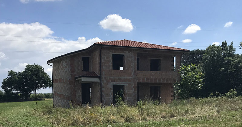 Obiettivo del progetto: riconfigurare e ampliare il fabbricato residenziale, la cui costruzione era stata interrotta dopo la realizzazione delle strutture e dei tamponamenti. Le esigenze della committenza unite alle scelte architettoniche e funzionali interpretate dagli architetti Laura Lampugnale e Rosanna Giallonardo hanno dato origine a una nuova distribuzione degli spazi interni rispetto alla preesistenza, con conseguente modifica delle aperture e dei prospetti.