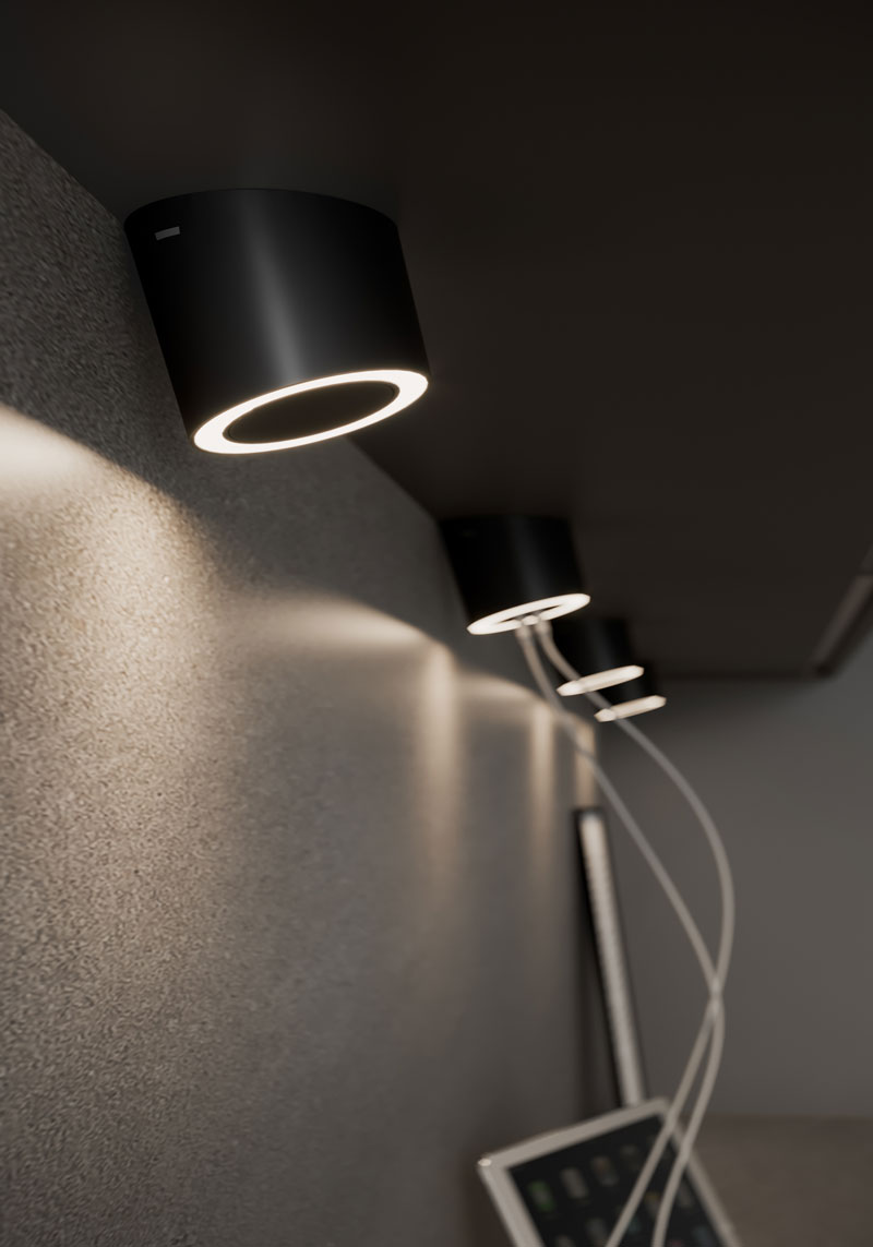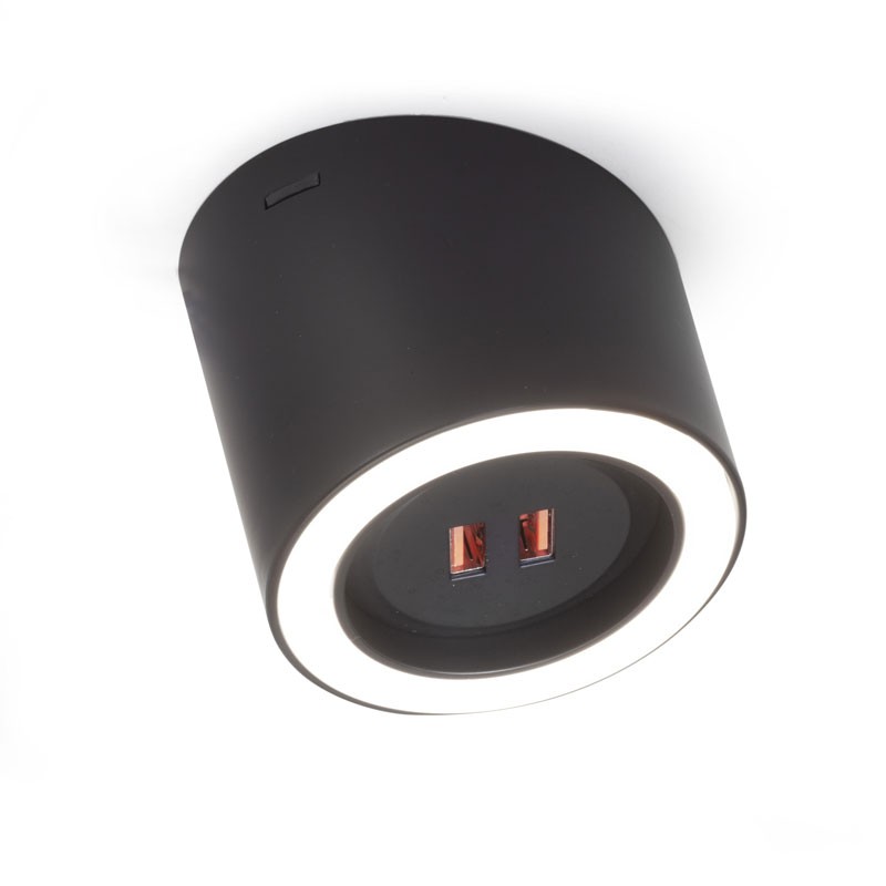 Si tratta di un oggetto semplice ed ergonomico, che aggiunge alle prestazioni illuminotecniche altre nuove funzionalità; è infatti un apparecchio multitasking che integra ad una sorgente luminosa perimetrale, una presa di corrente, una doppia presa USB o un interruttore multifunzione.