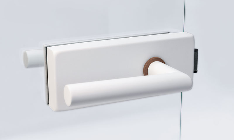 È possibile scegliere tra la serratura STUDIO Classic senza o con foro per cilindro europeo in combinazione con le cerniere OFFICE Classic per spessori di vetro di 8 mm e 10 mm.