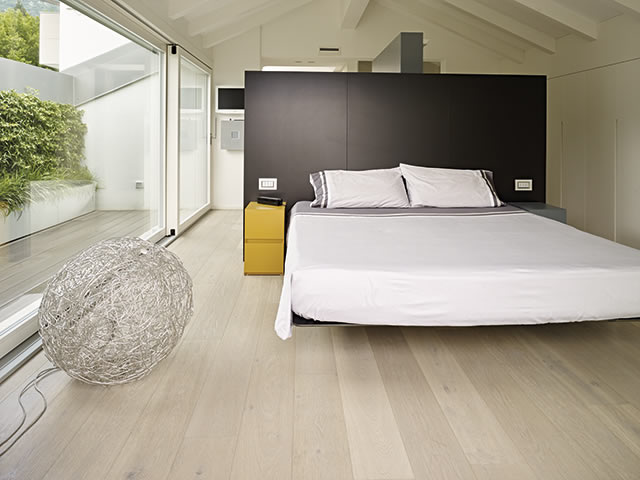 In questo caso si trattava di creare un “rifugio”: un luogo veramente intimo, calibrato al millimetro per l’armonia e il benessere di due persone. Per conseguire questi traguardi, la pavimentazione in legno ha giocato un ruolo fondamentale».