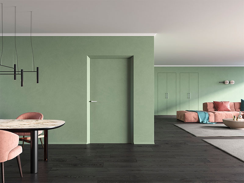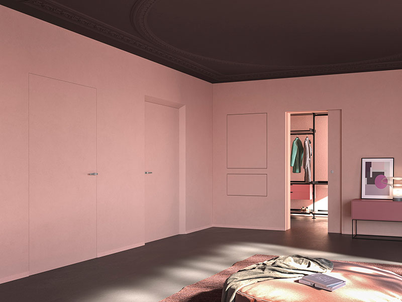 Nella versione da pitturare, per ottenere l’omogeneità tra parete ed apertura, ECLISSE 40 Collection se da una parte si integra scomparendo, dall’altra mantiene una linea scultorea, incorniciando la porta con un effetto 3D che muta al variare della luce.