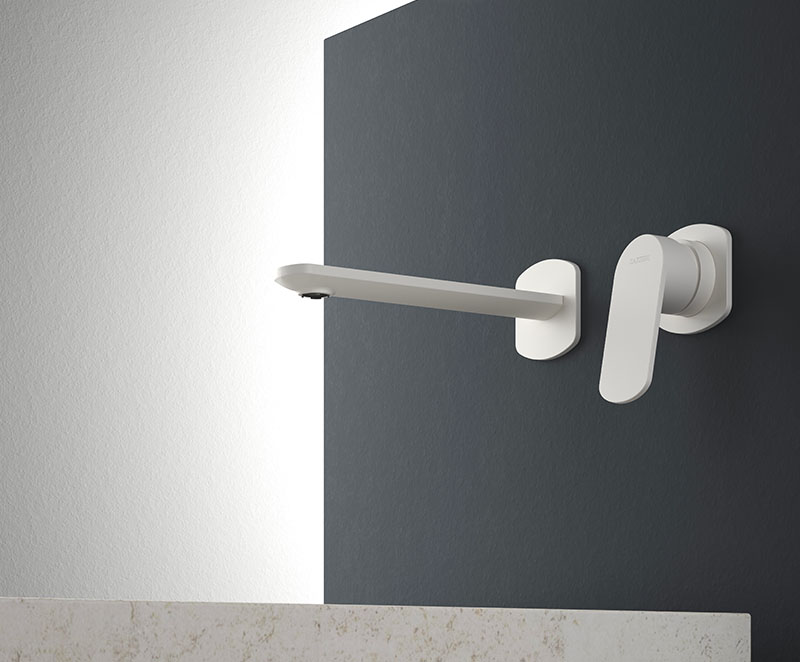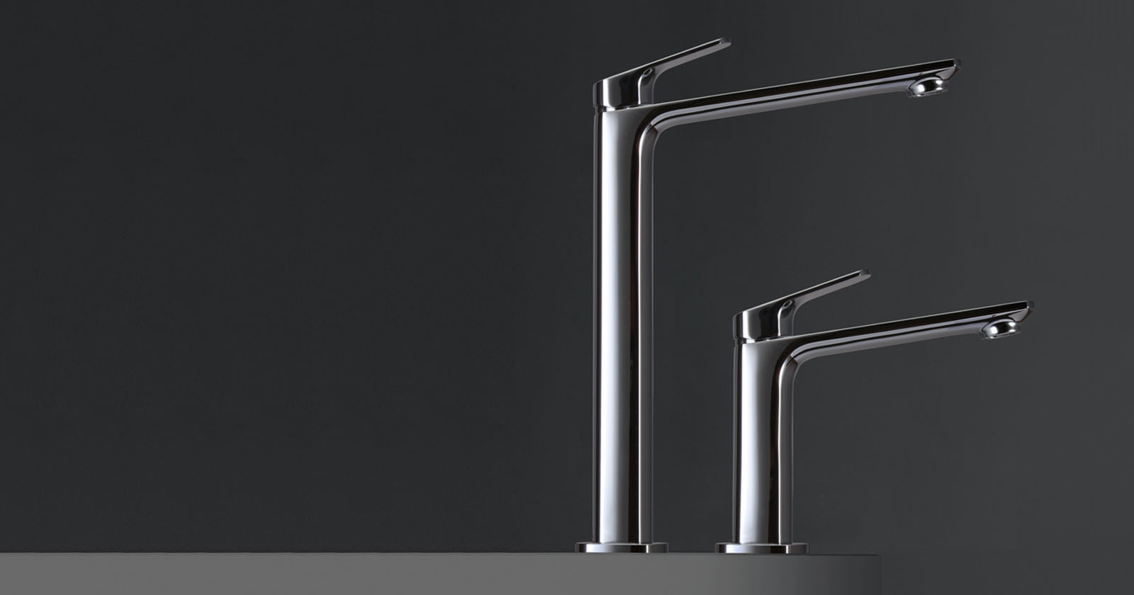 La versione lavabo da appoggio è disponibile in diverse altezze, h80x124, h110x155 e h24x189 mm, mentre quella da parete prevede due lunghezze per il getto, 180 e 225 mm.