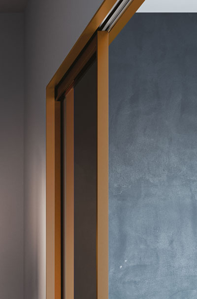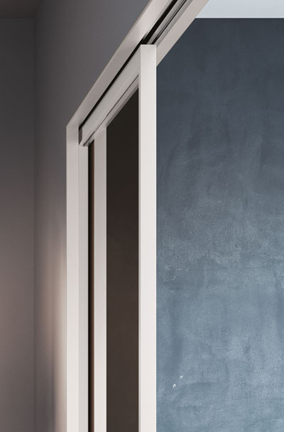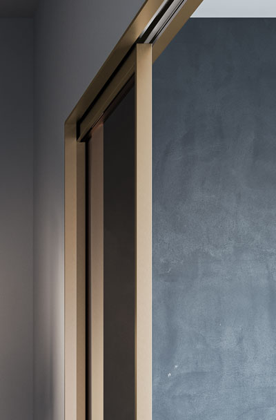 I profili si applicano sul perimetro del vano di passaggio dei modelli scorrevoli a scomparsa, a copertura della spalletta; rivestono il solo spessore visibile della parete rispettando l’essenzialità caratteristica di un controtelaio filo muro.