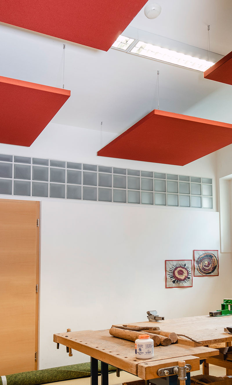 In tema di comfort acustico, poter contare su elementi dal design geometrico, minimale e personalizzabile come i pannelli Phonolook è un vantaggio. Lo dimostra il risultato ottenuto all’interno dell’Asilo di Malles, dove i pannelli fonoassorbenti si integrano con gli altri elementi preesistenti e la forma rigorosa crea una ordinata trama a soffitto che consente l’utilizzo di diverse varianti di colore, conferendo matericità e vivacità agli spazi.