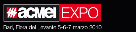 Dal 5 al 7 marzo 2010, presso la Fiera del Levante di Bari, apre i battenti ACMEI EXPO, prima edizione dell’evento fieristico dedicato al mondo dell’elettricità e dell’illuminotecnica, ideato da Acmei S.p.a.