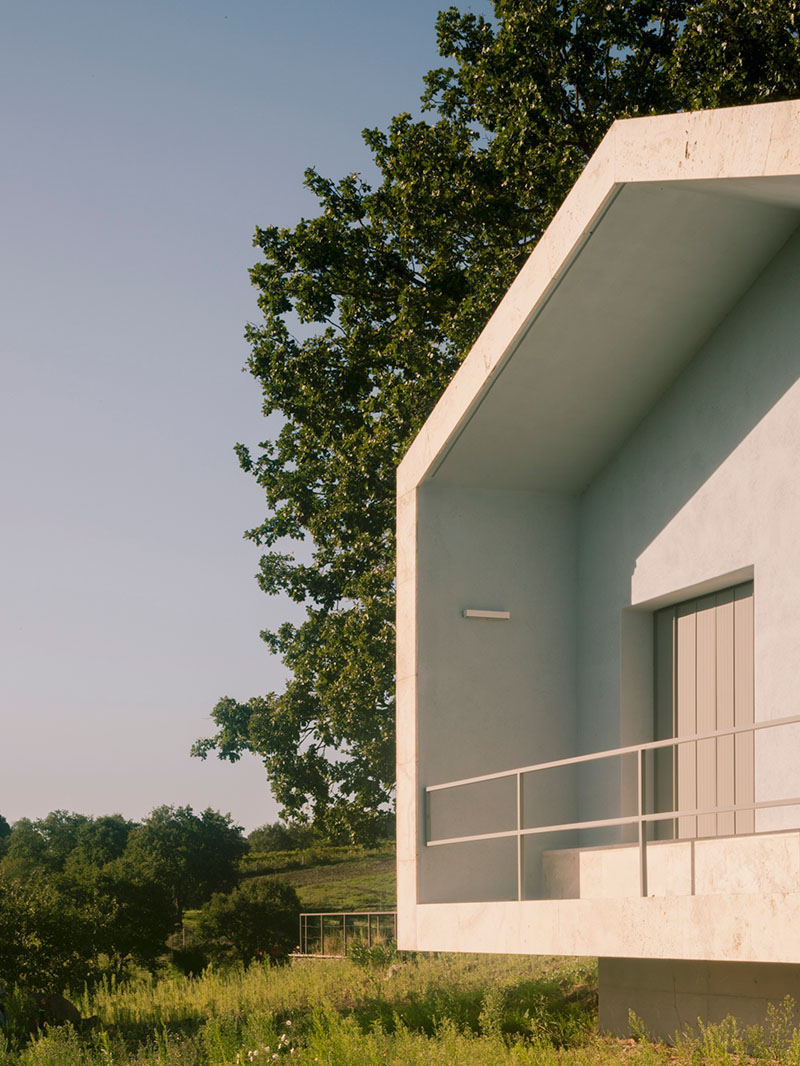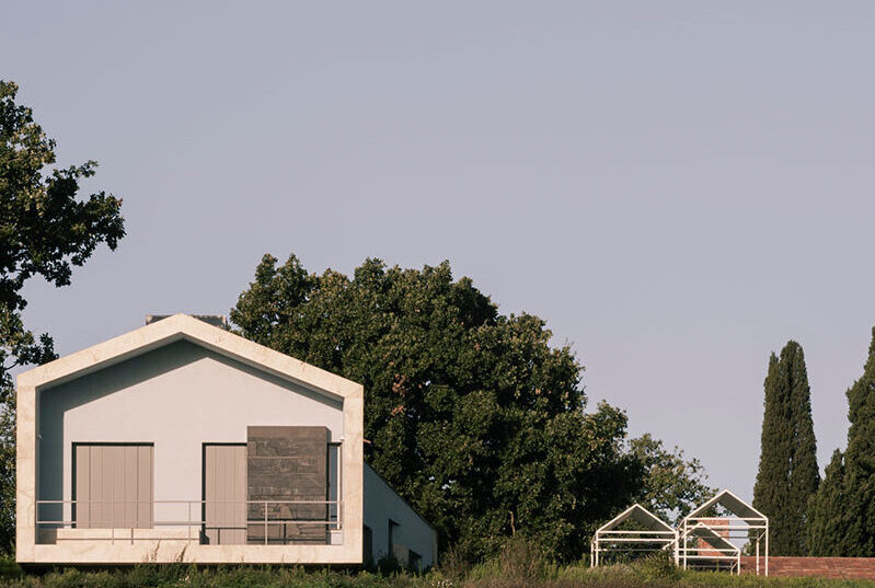 La loro scelta infatti, è stata, quasi istintivamente, quella di inserirsi in modo discreto e sensibile nel sito – situato nelle vicinanze di Montefiascone, sul lago di Bolsena, nel Lazio settentrionale – attraverso architetture che lavorassero in sinergia con esso e che in un certo senso dessero una risposta quasi “oggettiva” alle richieste della committenza e del luogo, recuperandone storia, geometrie, materie.