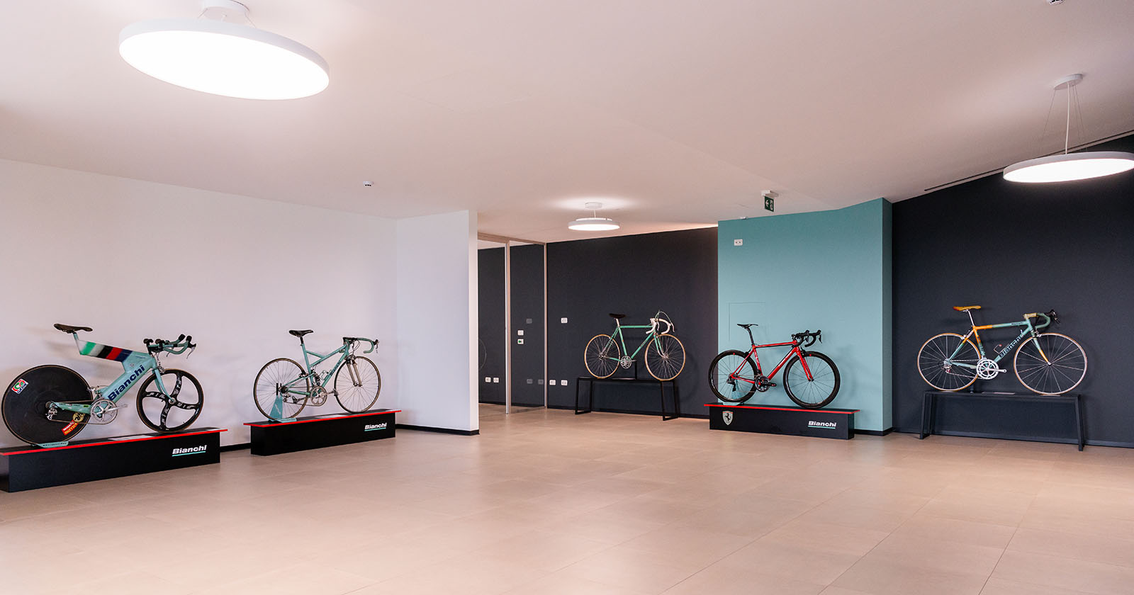 La nuova sede ospita anche lo showroom con un’area dedicata al racconto della storia aziendale attraverso l’esposizione di modelli storici del marchio accanto a biciclette di ultima generazione, muscolari ed elettriche.