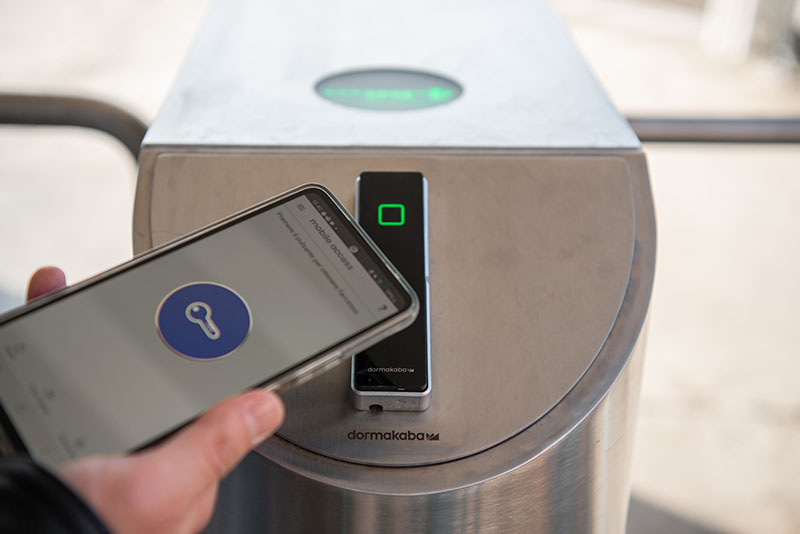 L’implementazione dei tornelli Kerberos TPB E01 e del portello HSD E01, primo step del progetto, ha reso possibile un monitoraggio avanzato e continuo degli accessi dall’esterno, integrato con il sistema Exos 9300 di dormakaba, che coordina i dati d’accesso con i terminali e i lettori BLE installati (i dipendenti possono usare il loro smartphone per gli accessi, grazie alla funzione dormakaba mobile access).