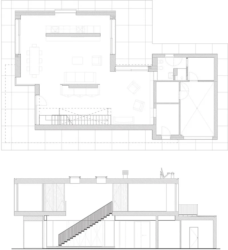 Il risultato? Due volumi fuori terra, realizzati con un sistema a telaio in c.a. e tamponamenti in blocchi POROTON®, posizionati all’angolo tra due strade, in relazione diretta con il traffico veicolare e l’adiacente pista ciclabile. Per questo, obiettivo primario di Casa MA è stato rendere “impermeabili” i due lati affacciati su strada, prevedendo ampie vetrate e piccole corti solamente sui lati rivolti verso la parte interna.