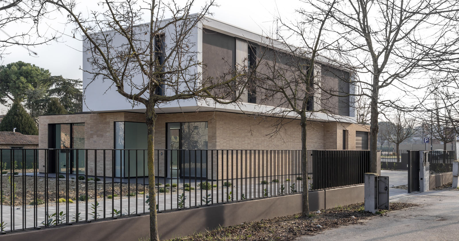 Inserita in un comparto residenziale di una zona di ampliamento urbano al margine nord ovest di Faenza – un’area adiacente alla zona artigianale, a destinazione mista, strategicamente posizionata tra le direzioni Bologna e Ravenna – Casa MA, di Montini Architettura, è un progetto intelligente nel suo rigore stereometrico, capace di combinare esigenze, funzionalità ed estetica, ponendosi in continuità con il paesaggio circostante in trasformazione.