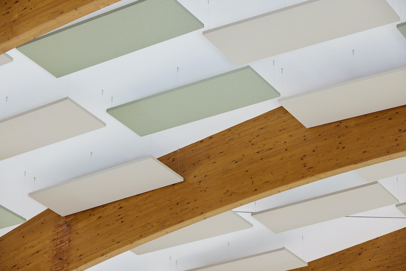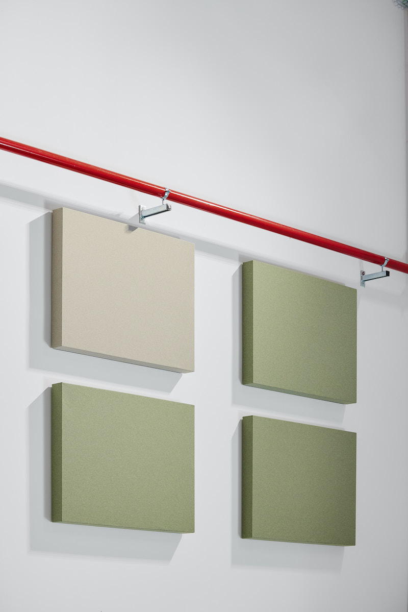 Per poter rispondere ai problemi di riflessione acustica riscontrata dai tecnici sono stati installati 248 pannelli fonoassorbenti Phonolook Solution Rettangolo (dimensioni 900 mm x 2400 mm, spessore 5 cm) sul soffitto, fissati con cavi e moschettoni in acciaio, e 147 pannelli dello stesso tipo (dimensioni 900 mm x 1200 mm, spessore 10 cm) sulle pareti, utilizzando un sistema di fissaggio specifico.