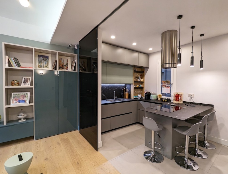 Monteverde si trova su una collina alle spalle del Gianicolo, è un quartiere residenziale che offre un rifugio di pace nel cuore di Roma. Si trova in questo contesto il progetto che vi raccontiamo: un intervento di ristrutturazione curato dallo studio Prospettive Architetti, che ha previsto una completa ridistribuzione degli spazi, partendo dalla volontà di destinare al living l’affaccio sulla via principale e di separare nettamente la zona notte dalla zona giorno.