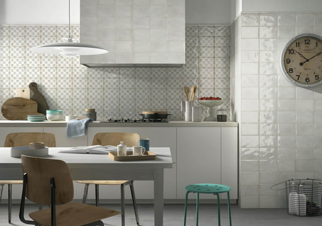 La forza del design del progetto Imola 1874 realizzato da ImolaCeramica sono la luce e il bianco miscelati a una gamma di colori polverosi: le tracce del passato mutano in una materia nuova tutta da scoprire.