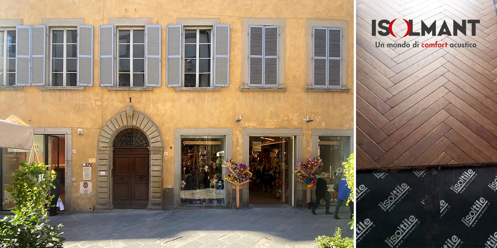 Il caso dell’unità immobiliare all’interno di Palazzo Spadari – complesso di tre piani di epoca rinascimentale situato nel cuore del centro storico di Arezzo – è un esempio perfettamente riuscito. Gli ingredienti essenziali sono stati una buona progettazione – curata dall’architetta Francesca Paola Nencioli – e l’integrazione di prodotti tecnologicamente avanzati come Isolmant IsolTile, uno strato acustico resiliente elastodinamico a basso spessore, con funzione desolidarizzante e armante appartenente alla famiglia Isolmant.