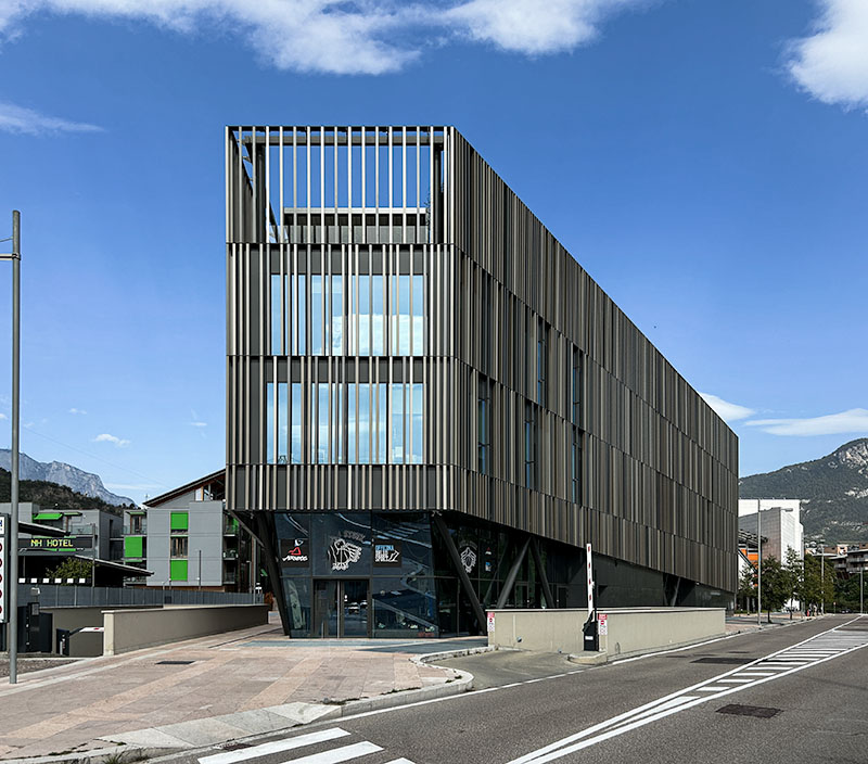 Uno degli aspetti più innovativi dell’Itas Forum è l’uso del pannello composito fornito da Alpewa per la realizzazione delle facciate ventilate (1.5000 m2 complessivi).