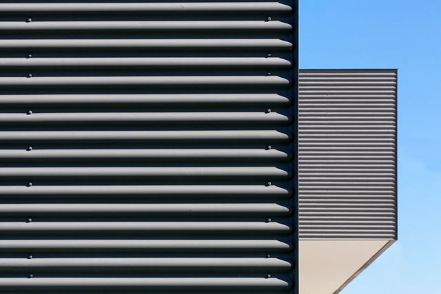 Il recupero dell’immagine è stato uno tra gli aspetti progettuali di primaria importanza, in quanto ha avuto il computo di comunicare la rinascita dell’attività produttiva. A questo recupero ha contribuito in maniera notevole il grigio quarzo della facciata, interamente realizzata con i pannelli ondulati VMZ Sinus di VMZINC, finitura QUART ZINC®.