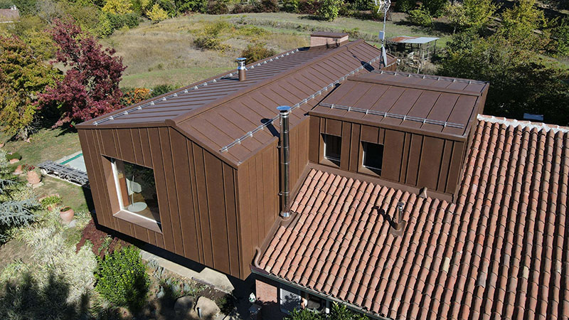Rivestimento copertura e facciata: lamiera metallica in nastro aggraffato