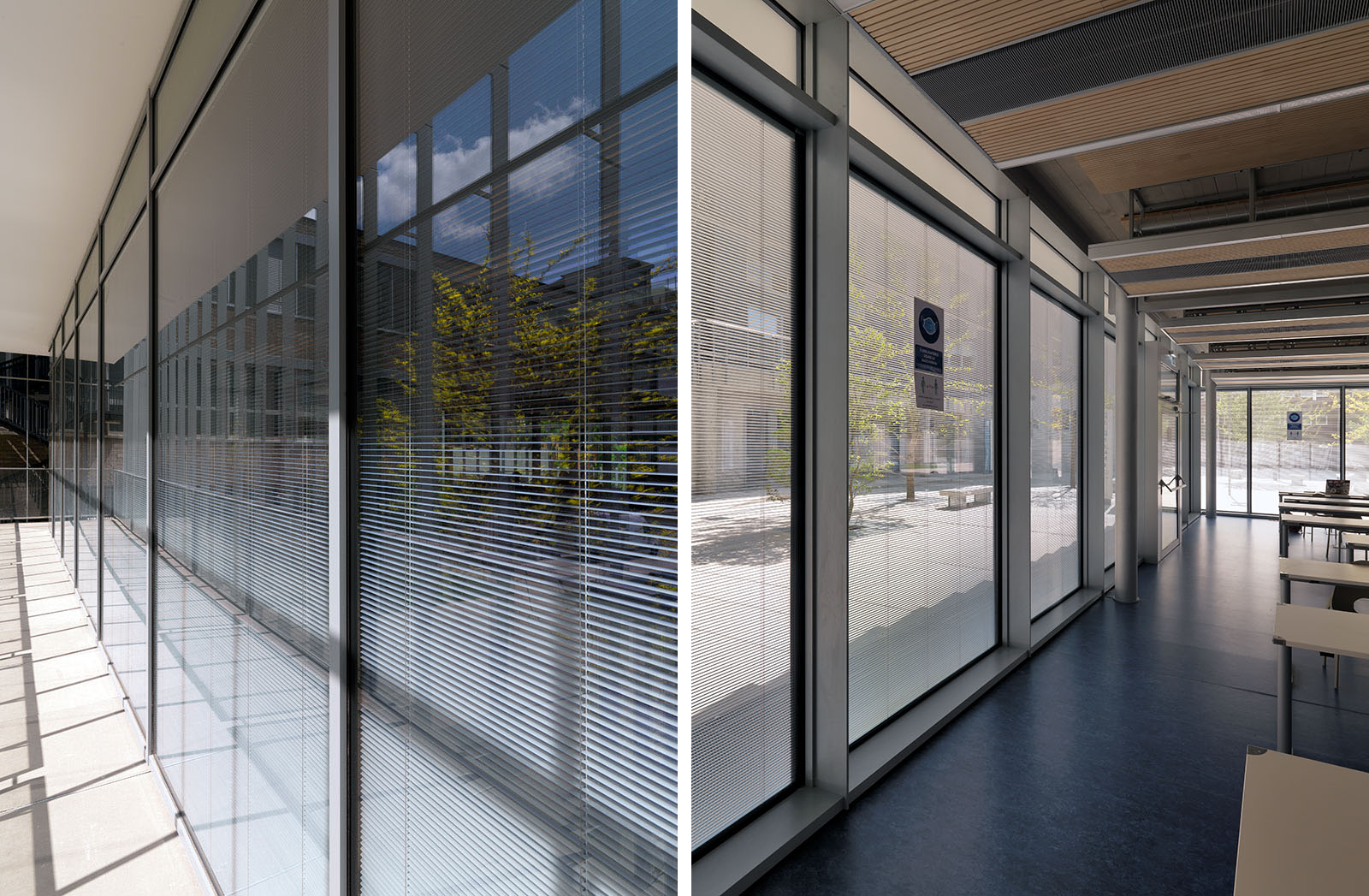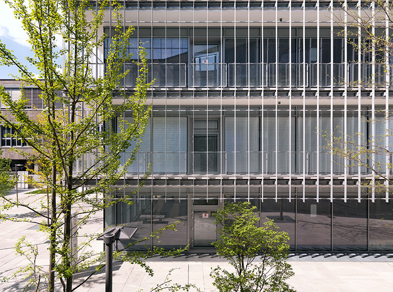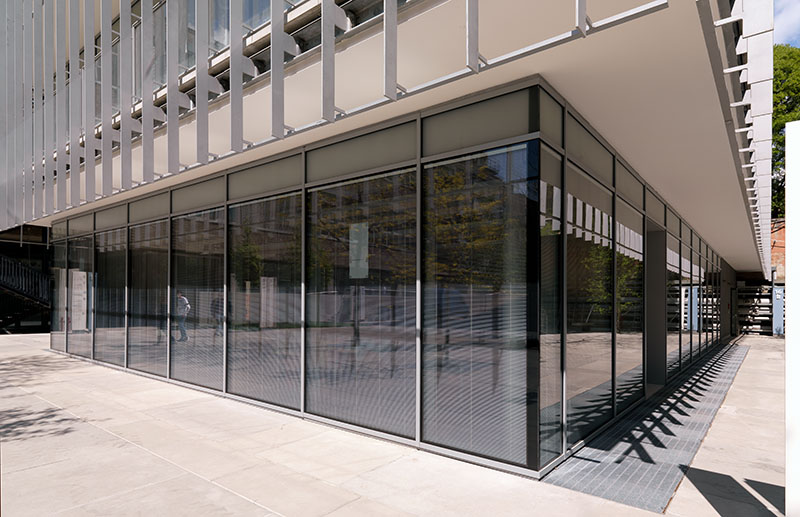 In questo contesto hanno trovato applicazione alcune centinaia di tende veneziane motorizzate ScreenLine, schermature solari integrate in vetrocamera inserite all’interno di facciate continue Schüco con sistema a montanti traversi appositamente estrusi con profili minimal.