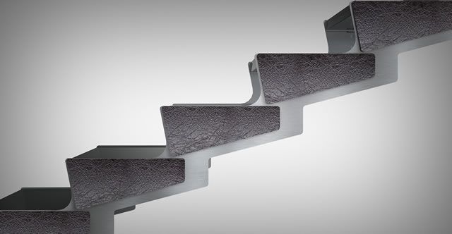 L’esclusivo sistema a slitta Ikona (domanda di brevetto depositata) permette di fissare in maniera innovativa i gradini, una volta inseriti nelle apposite guide.