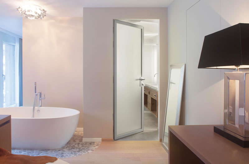 Il progetto ha previsto la realizzazione di ambienti della cura personale, bagni e home spa con porte di separazione dalle camere dal design moderno ed elegante.