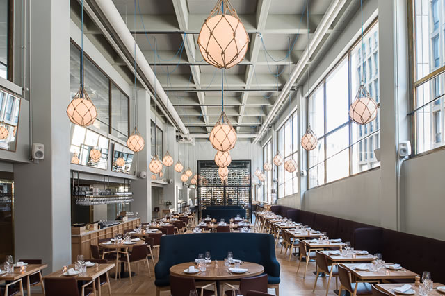 L’area del cocktail bar ha un ambiente caldo e accogliente ed è stata progettata facendo leva su materiali come l’ottone, il legno, il marmo e la pelle: a questi materiali si aggiunga il pavimento piastrellato pensato per richiamare le onde del mare scandinavo. La luminosa sala da pranzo e il cocktail bar sono separati da una grande parete di vetro nella quale sono contenuti i vini del ristorante; la sala da pranzo è caratterizzata da una forte luce naturale che è ottenuta grazie alle grandi vetrate che danno sulle strade del centro di Helsinki. Stesse caratteristiche per l’area riservata che, a seconda delle necessità, può essere unita alla sala da pranzo.