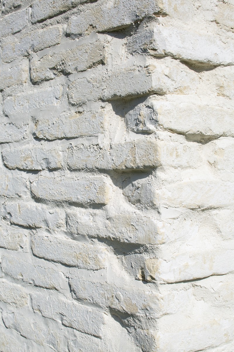 Il fronte ovest, allineato alla strada, esprime invece un carattere più urbano e introverso. Il volume più alto, sviluppato su tre piani, presenta poche aperture verticali, profonde e misurate, destinate ad ambienti di servizio. La muratura si configura come superficie compatta, quasi scavata, capace di proteggere la vita domestica dal traffico e dal rumore.