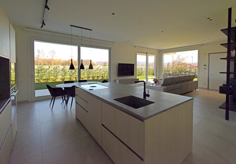 Questa casa è stata realizzata con impianti di ultima generazione che rispettano le richieste della normativa in termini di sostenibilità: pannelli fotovoltaici occultati nella copertura piana, pompa calore, sistema di riscaldamento e raffrescamento a pavimento e ventilazione meccanica controllata. Le caratteristiche di sostenibilità intrinseche della casa in legno si sposano perfettamente con le soluzioni impiantistiche utilizzate, anch’esse fornite da Marlegno, per un trattamento chiavi in mano che ha garantito a progettista e committenza di potersi affidare in toto in termini di efficienza e professionalità.