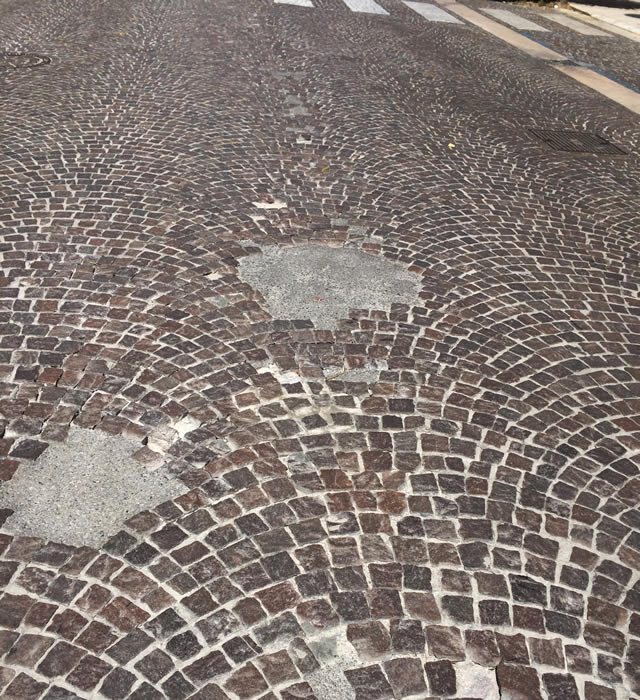Già dopo qualche anno, tuttavia, i cubetti di porfido, posati a cerchi concentrici, iniziarono a dare problemi.