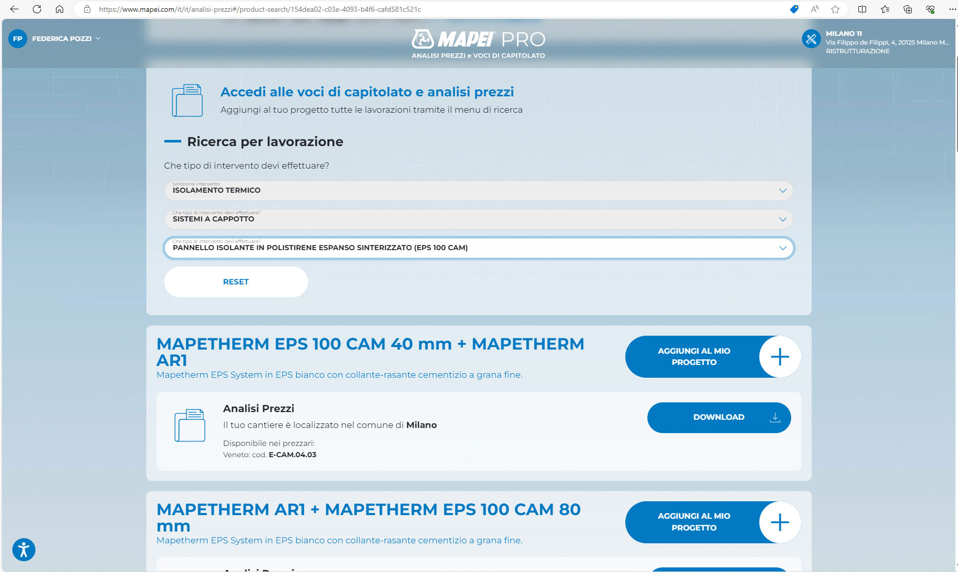 I tecnici possono cercare, selezionare e scaricare in pochi click voci di capitolato e analisi dei prezzi per diverse lavorazioni.