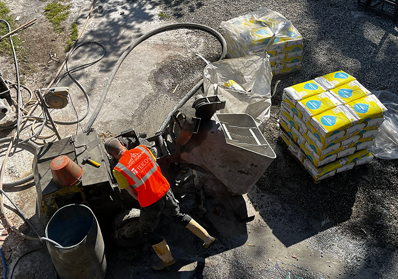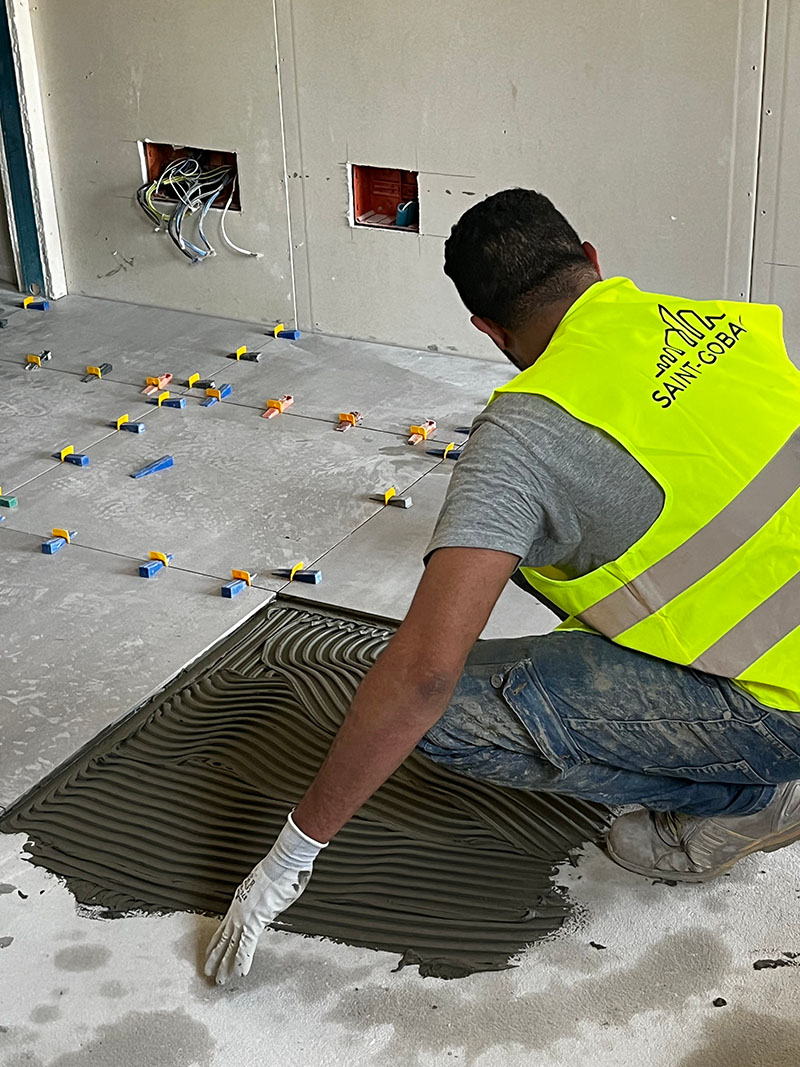 Sono stati posati i massetti Weber ad elevata resistenza meccanica ed essiccazione medio-rapida ed è stato utilizzato l’adesivo cementizio deformabile ed elevata capacità bagnante per incollare le piastrelle.