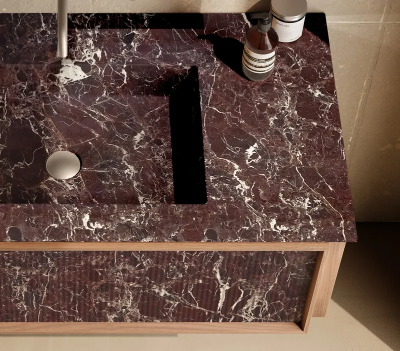 variante in Rosso Levanto, una finitura sofisticata che si aggiunge alle già apprezzate Verde Alpi,