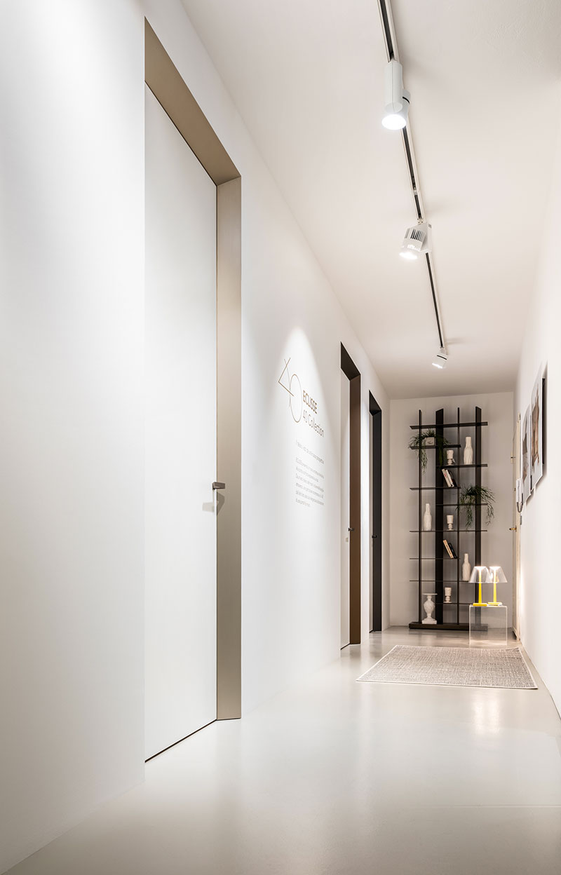 Protagonista dell’allestimento sarà ECLISSE 40 Collection, il primo e unico telaio inclinato a 40 gradi che emerge dalla parete e incornicia la porta dandole una presenza unica e caratterizzante. Un nuovo archetipo che osserva la porta da una nuova prospettiva, presentandola in un aspetto inedito, rigoroso e minimale.
