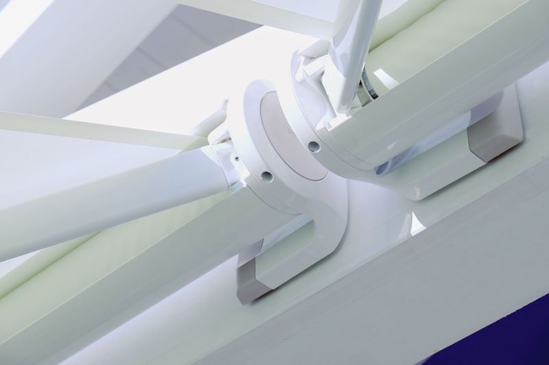 L’apertura e la chiusura del telo possono avvenire manualmente, tramite arganello, o in maniera automatizzata, grazie a un motore tubolare elettrico praticamente invisibile, inserito all’interno del rullo avvolgitore. Se motorizzata, Duck può essere resa ancor più efficiente da rilevatori di sole e vento, sistemi intelligenti in grado di reagire automaticamente al cambio delle condizioni climatiche: il primo fa sì che la tenda si apra in caso di intensa radiazione solare, mantenendo così l’abitazione fresca e ombreggiata; il secondo determina il tempestivo avvolgimento del tessuto in caso di vento forte, superiore ai valori di resistenza massima del prodotto, salvaguardando sempre l’integrità di quest’ultimo.