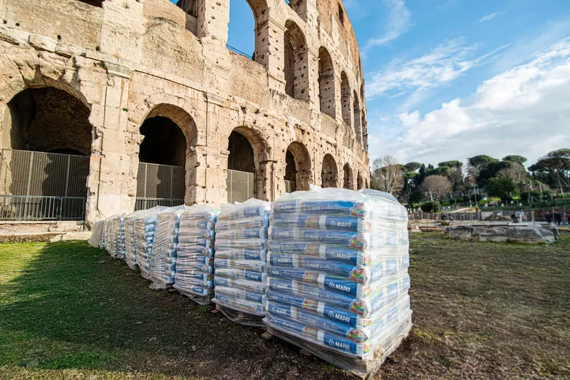 Mapei prende parte all’intervento, avviato a seguito di appalto pubblico indetto dal Parco archeologico del Colosseo, attraverso la messa a punto di due prodotti di nuova generazione sviluppati ad hoc e in tempi record dai propri laboratori di ricerca e sviluppo, usando materiali del tutto simili a quelli di epoca romana, come la calce, ma innovati per garantire le migliori performance.