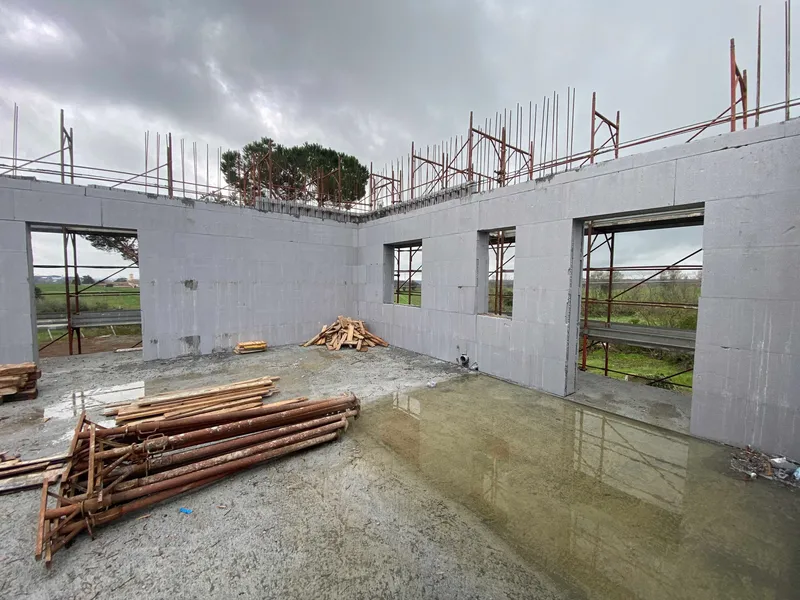 Per le pareti portanti, è stato utilizzato il sistema H2Wall®, un cassero modulare in EPS con trasmittanza termica migliorata, che offre isolamento termico e resistenza sismica. Questo sistema consente di costruire edifici con pareti in calcestruzzo armato sismo-resistenti, migliorando le prestazioni energetiche. La parete finale, con uno spessore di 35,6 cm, offre una resistenza termica di 5,27 m²K/W e un sfasamento termico superiore a 8 ore.