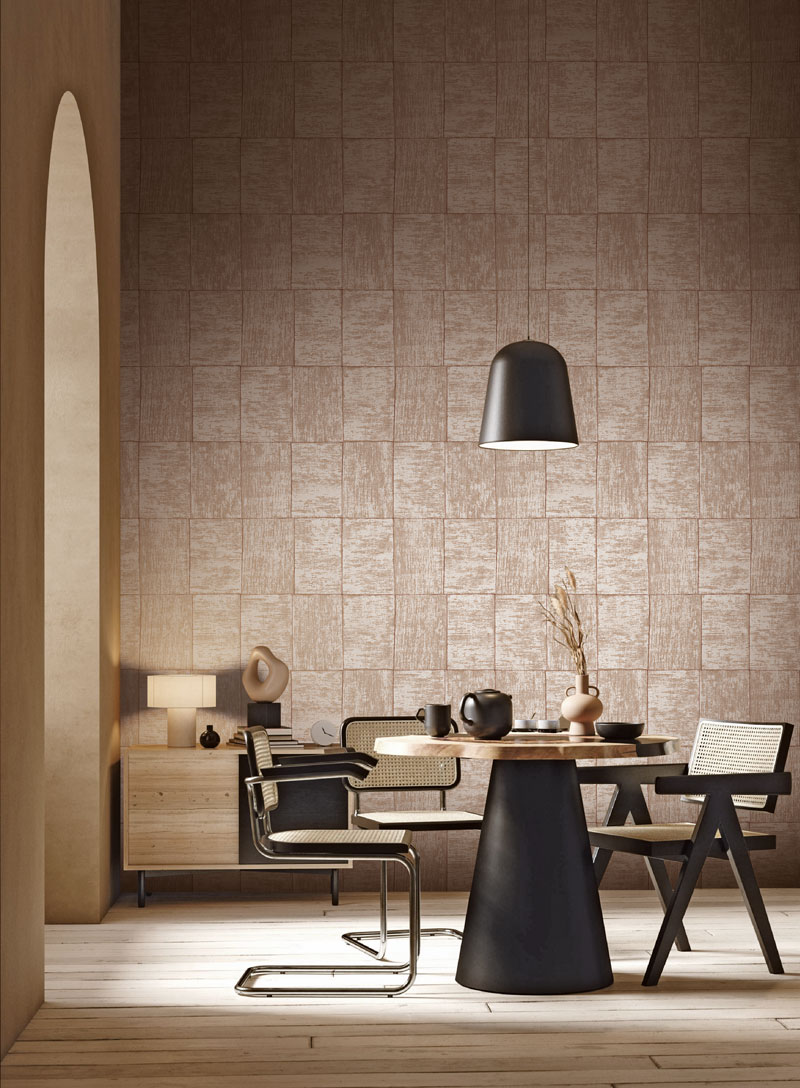 JV603 ALMA è fornita in rolli da 100 cm x 10,05 mtl su vinilico base tessuto non tessuto.