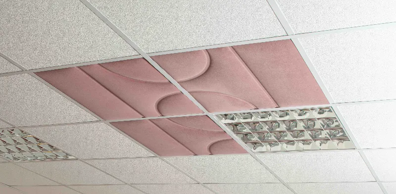 Il progetto è firmato da Odeon Design Studio e nasce da una ricerca attenta su estetica e sostenibilità. Ogni pannello è realizzato con ISOLFIBTEC, fibra ottenuta dal recupero di PET riciclato, materiale che garantisce elevate prestazioni fonoassorbenti e riflette l’impegno di Isolspace verso un design consapevole.
