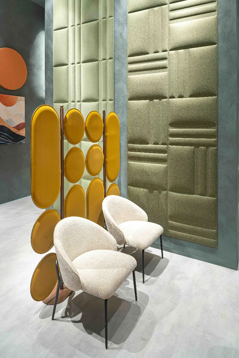 Ma è anche negli ambienti professionali e contract che Alma e Trame mostrano tutta la loro versatilità. Grazie alla modularità e all’effetto boiserie contemporanea, le pareti lsi trasformano in superfici scenografiche e personalizzabili, ideali per dare personalità a hall, zone di accoglienza, aree ristorante e camere. Non solo decorazione, ma una vera esperienza di comfort acustico che valorizza l’identità di hotel, ristoranti e spazi condivisi, migliorando la qualità della permanenza.