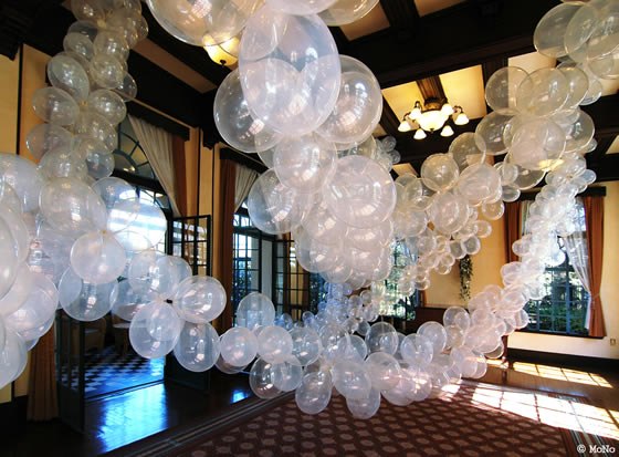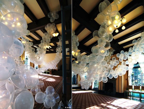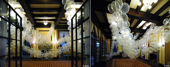 Assemblata impiegando 1.000 palloncini trasparenti collegati tra loro e liberi di fluttuare nell’area espositiva “sotto forma di arco circolare… ammassato nell’angolo della sala e arrotolato sul pavimento” (architizer.com), l’opera era concepita per l’interazione visiva e tattile: “i visitatori potevano apprezzare la bellezza della sala e [allo stesso tempo] sperimentare la strana sensazione del grappolo molecolare di memoria, camminando liberamente attraverso l’anello di palloni” (mono-japan.net).